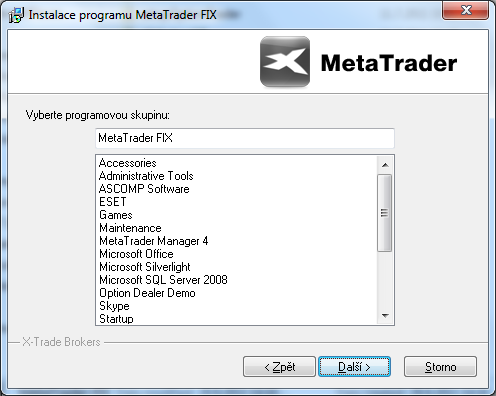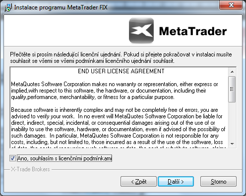 V této fázi se již instalují soubory obchodní platformy MetaTrader. Pro přerušení procesu použijte tlačítko Storno.