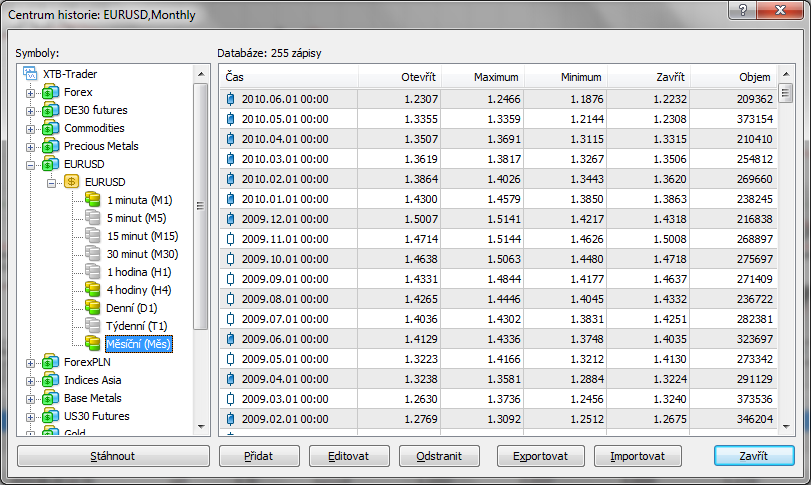 Data lze stáhnout ve variabilní hloubce, která se odvíjí od zvolené periody.