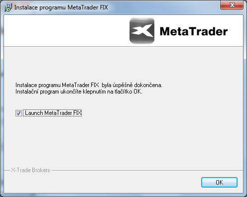 Stiskněte tlačítko OK. Instalace je úspěšně ukončena a bude spuštěna platforma MetaTrader. Ujistěte se, že máte aktivní připojení k Internetu.