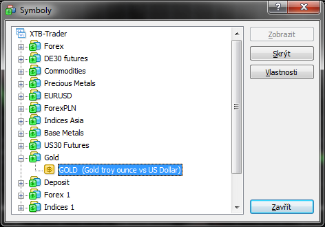 Nápověda: Po rozšíření základního demo účtu na plnohodnotnou nabídku je nutné pro zobrazení všech symbolů použit tuto funkc | |