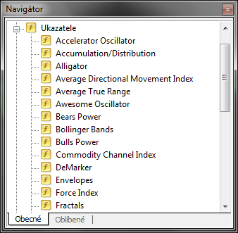 Každý uživatel má zde možnost definovat si svoji vlastní sadu oblíbených instrumentů, které se zobrazují v okně Trh.
