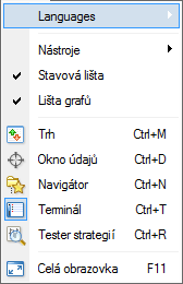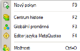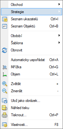 Nápověda: Systém nabídky aktivované pravým tlačítkem myši funguje v rámci celé platformy MetaTrader.