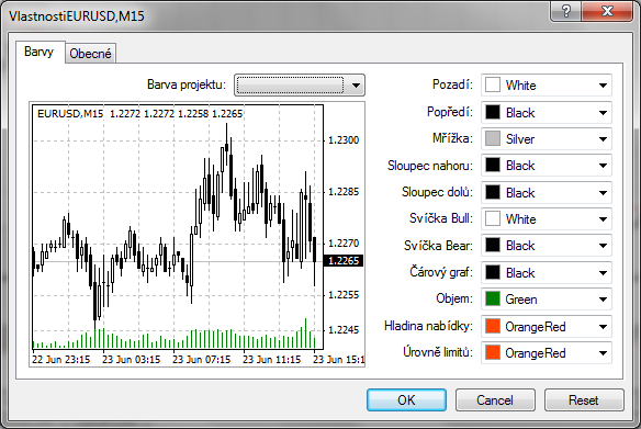 Zobrazit OHLC | Zobrazí v grafu hladiny OHLC. |