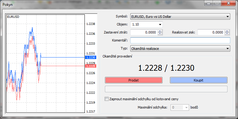 Výchozí odchylka | Nastaví výchozí odchylku (deviation) pro podání pokynu. |