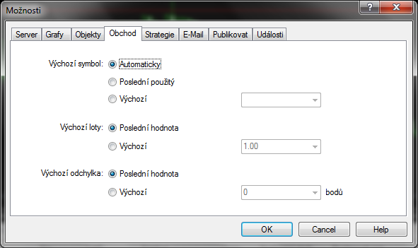 Výchozí loty | Nastaví výchozí objem pro podání pokynu. |