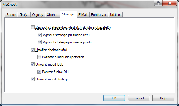 Umožnit import DLL | Povolí/znemožní import DLL knihoven, které používají některé strategie. |