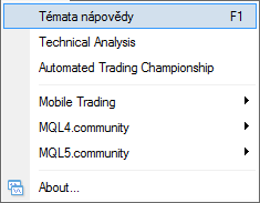 Zobrazí nápovědu pro systém MetaTrader. Nápověda je k dispozici v anglickém